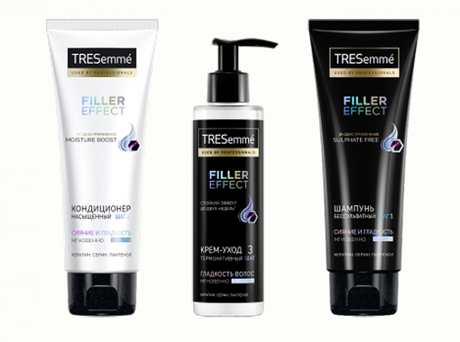 Рекомендуем: чтобы волосы были гладкими и блестящими без агрессивного воздействия химических веществ, попробуйте процедуру ботокса для волос. Если же вы предпочитаете домашний уход, вам в помощь коллекция Filler Effect бренда TRESemme. Это трехшаговая система ухода, включающая бессульфатный шампунь, суперпитательный кондиционер и термоактивный крем. Уникальная формула средств делает волосы гладкими и блестящими без агрессивного воздействия химических веществ, содержащихся в традиционных составах схожих процедур.