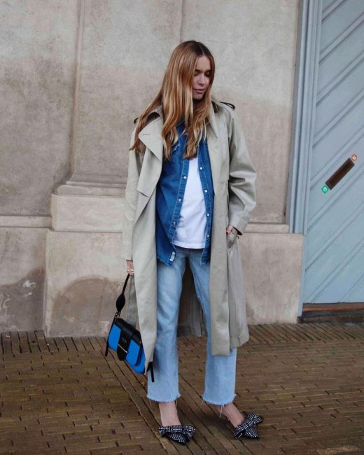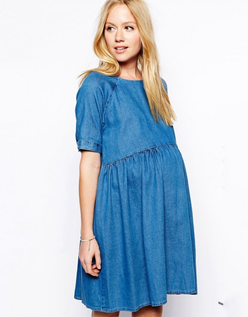 В моде джинсовые платья-рубашки свободного кроя. Они хорошо скрывают животик, не сковывают движения. К такой же категории одежды относятся туники из денима.