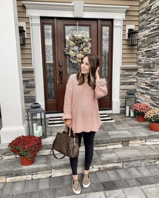 Свитера крупной вязки свободного размера. Популярная модель свитера-платья длиной чуть выше колена, которая не сковывает движения. Ее можно носить с трикотажными леггинсами и лосинами, джинсами с эластичным поясом, которые будут поддерживать животик.