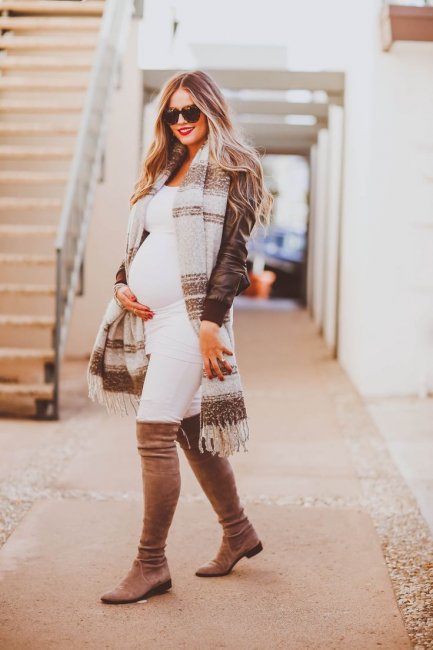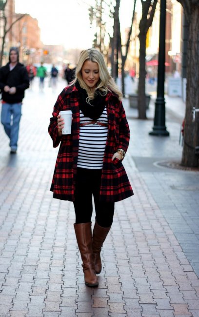 Для женщин в положении подходят модели верхней одежды длиной ниже пояса. Укороченные изделия типа бомбера, коротких курток нужно носить с теплым трикотажным свитером-платьем, брюками.