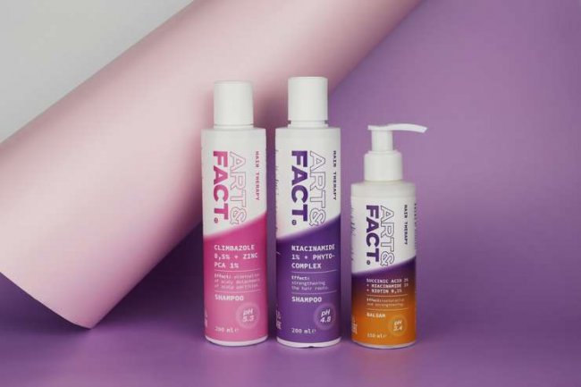 Бренд ART&FACT также запустил целое новое направление Hair Therapy. Первыми новинками стали Шампунь для профилактики выпадения волос и Шампунь от перхоти, а также Восстанавливающий и укрепляющий бальзам для волос. Эти средства полностью отвечают концепции бренда — средства узконаправленного действия для решения конкретных актуальных проблем. В пост-ковидное время алопеция стала глобальной проблемой людей, и задача нового шампуня и бальзама— способствовать восстановлению роста и укрепления волос. Еще одна из популярных проблем в области кожи головы — перхоть, в связи с этим выбор при запуске первой линии пал именно на создание продукта для решения этой проблемы.
