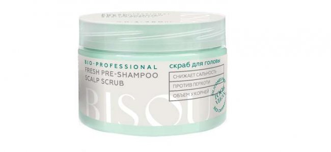 Если пилинг — это очищение кожи головы с помощью химических средств (кислот), то скрабы очищают кожу механически, при помощи абразивных частиц. Какой вариант выбрать, решать вам, но если решили остановиться на скрабах, ловите информацию о новинке российского бренда BISOU. Этот скраб хорош тем, что, параллельно с очищением, он еще отлично освежает — благодаря эфирному маслу мяты и ментолу. В целом же средство направлено на улучшение кислородного обмена в волосяных луковицах, стимуляцию роста волос, предотвращение образования перхоти. Уменьшает шелушения и раздражения, ломкость волос.