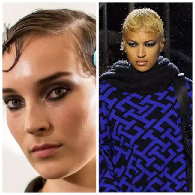 На ряде показов визажисты воплотили тренд, который еще год назад популяризировали корейские блогеры, он называется «глаза ангела». Суть заключается в том, чтобы создать сияющий взгляд. Для этого на подвижные веки наносят серебряные тени, можно сатиновые или металлик, а также тени с блестками. В ходу именно серебро, потому что цвет считается чистым. Дополняют макияж практически незаметные растушеванные стрелки, помадой под цвет губ или в розовых тонах.