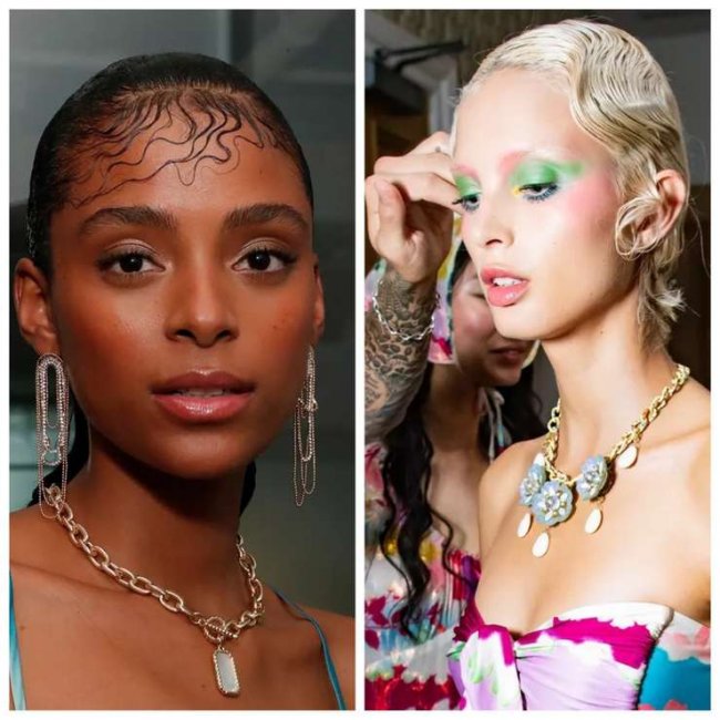 Образы и для офиса, и для праздников бьюти-тренды весна-лето, которые можно примерить уже сейчасNARSISSIST Rodarte Все тенденции недели моды весна-лето можно объединить одним словом — неоклассики. Стилисты и визажисты воплотили то, что было модно в предыдущих сезонах, слегка переосмыслив «пройденное». Прически Немного усилий и самая простая укладка может превратиться в произведение искусства. Если вы не хотите становиться арт-объектом, но быть в тренде, достаточно просто подстричь модную челку. Тупая челка густая челкаTom Ford spring-summer2024/Louis-Vuitton spring-summer 2024В тренде густая прямая челка, которую, по аналогии со стрижкой каре, называют тупой. Она может быть разной длины — от очень короткой до ниспадающей на глаза. Длинная идет практически всем и является отличной альтернативой ботоксу. Пучки пучкиFilippo Fior/ТИА АДЕОЛА ХАННА ТЕРНЕР ХАРТС ДЛЯ BFAВ моде, как академические пучки в стиле балерины, так и легкая небрежность, когда из композиции могут торчать волоски. Выделяются из этого ряда пучки-бутоны. пучкиОЛИВИЯ ХЭНКОКВыглядит прическа, как произведение искусства. Для создания нужно для начала накрутить волосы с помощью бигуди (взять крупные пряди), затем сделать высокий хвост, потом собрать каждую прядь в лепесток у основания хвоста, закрепив шпильками, лаком. Косы косыДЖЕБ БЕРРОУЗ/УЛЛА ДЖОНСОНМелкие косички, практически такие же, которые предлагают заплести в южных странах на пляже, обещают стать трендом сезона. Косички нужно собирать в прически: хвосты, пучки, в косы из кос. Плюс такого плетения в том, что оно трансформируется в кудри а-ля мелкий бес. И прическа, и укладка два в одном. Банты бантыChristian Siriano, Коди РасмуссенТатьяну Михалкову (жену Никиты Сергеевича) можно считать трендсеттером. Ведь она популяризировала банты в прическах еще до того, как они стали мейнстримом. То есть до сезона весна-лето 2024. Продавцы приготовились обогатиться на продаже бантов. Ведь они уже во всех мастер-классах по созданию укладок. Можно покупать готовые банты-заколки. Но, чтобы прослыть модницей, лучше украшать прическу лентами, собирая их в банты. Ленту можно вплести в косу, сделав ее интереснее, украсить ей пучок или распущенные волосы, закрепив, вокруг головы или сделав прическу-мальвинка. Ретро-волны ретро-волныFe Noel/ХЕРАРДО СОМОСАВлажный стиль в укладках в моде уже который год. В этом сезоне стилисты вспомнили про ретро-волну на мокрых волосах. Нужно просто нанести на пряди гель, зачесать волосы назад, выпустив прядь у лба, и с помощью гребня выложить ее в волну. Стилисты говорят, что это идеальная укладка для тех, кто не успел помыть голову. Никто не догадается, что у вас на самом деле грязные волосы. Макияж Адаптация модного макияжа 60-х, немного вайба 90-х и корейские тренды — нашли отражение в макияже следующего сезона. Основной акцент идет на глаза, но есть и интересные вариации в макияже губ. Глаза ангела глаза ангелаChristian Siriano/МАРК ГРГУРИЧ STILA COSMETICSНа ряде показов визажисты воплотили тренд, который еще год назад популяризировали корейские блогеры, он называется «глаза ангела». Суть заключается в том, чтобы создать сияющий взгляд. Для этого на подвижные веки наносят серебряные тени, можно сатиновые или металлик, а также тени с блестками. В ходу именно серебро, потому что цвет считается чистым. Дополняют макияж практически незаметные растушеванные стрелки, пом
