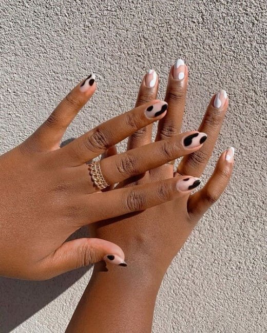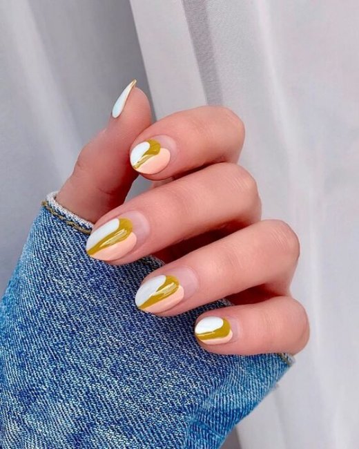 Нейтральные и приглушенные цвета привносят веселье в этот игривый дизайн и этот маникюр с легкостью дополнит платье любого цвета.