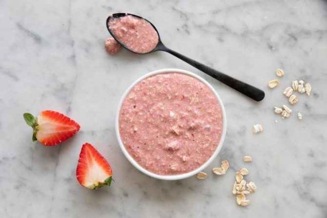 Овсянку измельчите в кофемолке до состояния порошка или мелких крупинок, если хотите сделать маску-скраб. Клубнику превратите в пюре и смешайте с овсянкой. Размешайте до однородной консистенции.