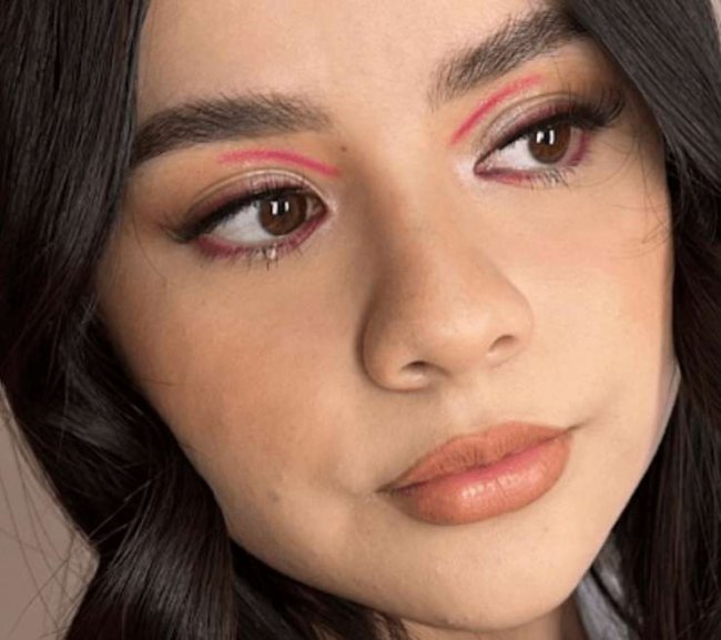 Отдохните от теней и нанесите тонкий лайнер в этом простом и трендовом розовом макияже. Придерживайтесь тенденции плавающей подводки и нанесите ее на верхнее веко.