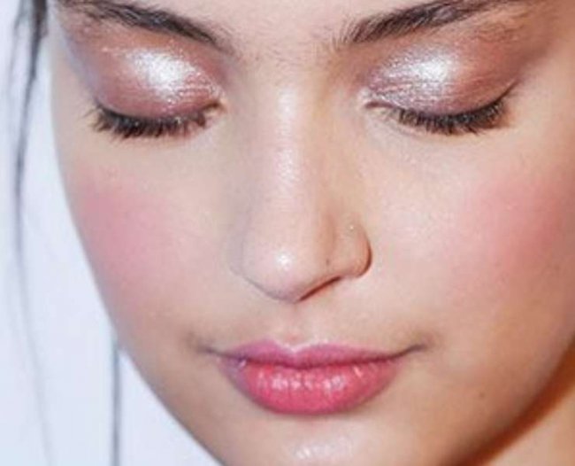 Чтобы излучать чувственные флюиды, попробуйте сделать перламутровый розовый макияж. «Его можно выполнить вообще одним средством — например, кремовым. Один и тот же оттенок нанесите на веки,скулы (как хайлайтер) и губы. Если вам не хватает контрастности, добавьте темного бежевого на внешние уголки глаз сверху», — предлагает Любовь.