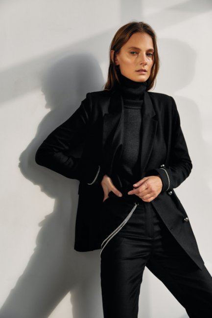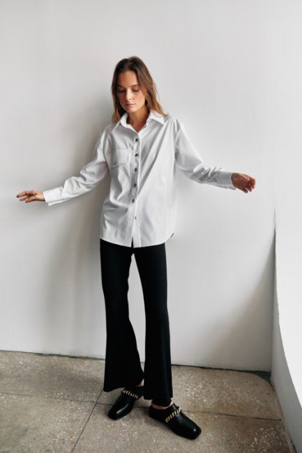 Классическое сочетание белого и черного цветов - модный прием, который из года в год встречается в коллекциях дизайнеров. Так, элегантный цветовой тренд, который популяризировала Коко Шанель, был актуален как 100 лет назад, так и востребован в современном обществе. Бренд Kohai умело работает с этим трендом. С помощью своей новой коллекции показывает как не скучно носить строгое цветовое сочетание, напоминающие о временах школьной парты. Залогом успеха в этом вопросе является комбинация материалов разной плотности и фактур.