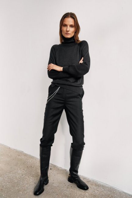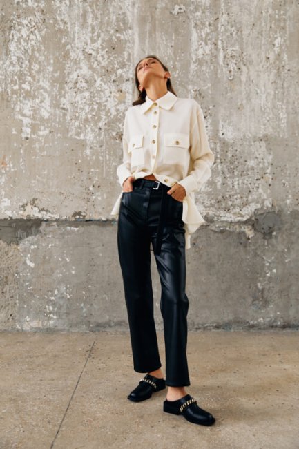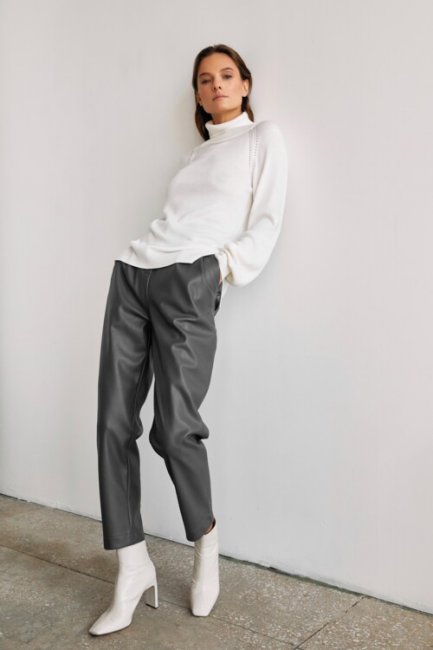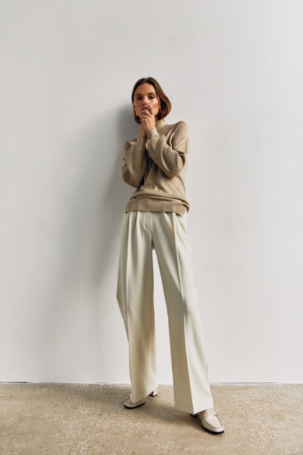 Зимой хочется чувствовать максимальный комфорт, но при этом важно не забывать про соблюдение рамок дресс-кода. Так, если в спортивных джоггерах и худи можно отправиться на прогулку, то для повседневных дел лучше подойдут утилитарные брюки и базовый свитер. Одно из самых практичных решений на каждый день может выглядеть абсолютно по-разному. Украинский бренд Kohai предлагает несколько вариантов, которые придутся по вкусу каждой моднице. Наш фаворит: монохромный ансамбль в оттенках нюда, состоящий из лаконичного свитера и брюк-палаццо. Дополнить такой образ можно с помощью лоферов на каблуке и сумки-тоута.