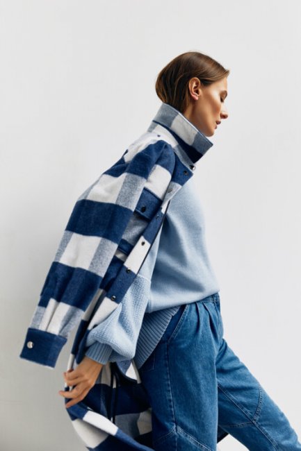 Лучшими друзьями для неформальных встреч или образов выходного дня являются практичные и удобные вещи, среди которых джинсы занимают первую позицию. В этом сезоне актуальную пару дениму составляют шерстяные фланелевые рубашки в клетку, которые полюбили главные streetstyle-звезды по всему миру. Примерить модный тренд на себя можно с помощью новой коллекции Kohai осень-зима 2020/2021. В линейке у бренда найдется пара идеально сидящий синих джинсов и удлиненная рубашка в клетку виши, которую можно накинуть поверх теплого свитера.