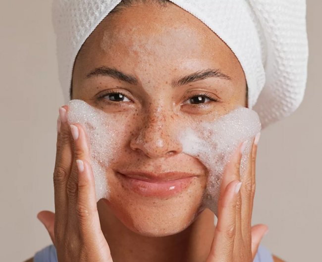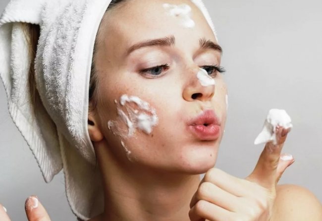 Ополоснуть прохладной водой лицо. Наносить пенку нужно на слегка увлажненную кожу.