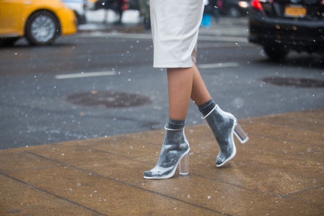 Прозрачная обувь стала трендом сезона. Дизайнеры создают босоножки, туфли, ботильоны и даже сапоги. Прозрачные ботинки защитят от дождя и слякоти в осеннюю пору, а стильный дизайн поможет оставаться в тренде.