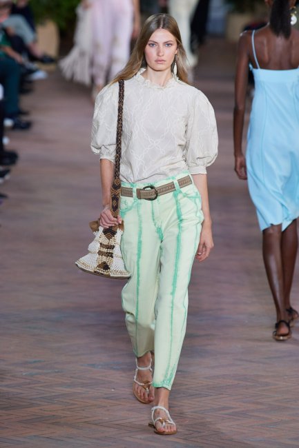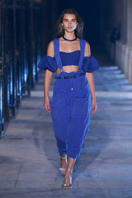 BurberryТрадиционно, в весенне-летних коллекциях брендов находится место цветному дениму - от пастельных решений до ярких оттенков. Этот сезон не стал исключением. Chanel воспели широкие розовые джинсы, Alberta Ferretti показали фисташково-зеленые джинсы с узорами tie-dye, а Isabel Marant – модели на подтяжках из ярко-синего денима.