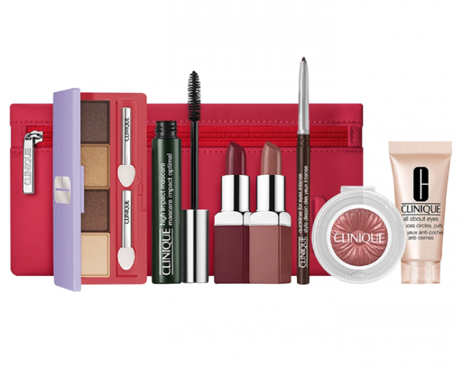Не знаете, как сделать трендовый мейкап и чтобы макияж, нанесенный утром, «дожил» до вечера? Тогда набор «Все для макияжа» от Clinique — ваш вариант. Внутри косметички — шесть самых необходимых средств для макияжа и одно средство ухода за кожей для мгновенного превращения дневных образов в вечерние. Легкий крем-гель для ухода за кожей вокруг глаз All About Eyes увлажняет и подготавливает область глаз к макияжу; лимитированные четырехцветные тени для век All About Shadow, которые не осыпаются и не тускнеют, позволят создавать индивидуальные образы; автоматический стойкий карандаш для глаз с растушевкой Quickliner, который невероятно легко наносится, придаст макияжу выразительность, а универсальная тушь для ресниц High Impact мгновенно сделает ресницы длиннее и объемнее. Также в наборе — компактные румяна Cheek Pop с регулируемым покрытием и помада для губ в двух оттенках, которая подойдет для создания дневных и вечерних образов.