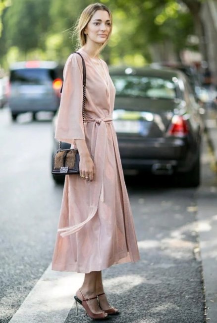 На пике популярности модели однотонной нюдовой палитры из благородных материалов. Большинство из них дизайнеры снабдили тонкими ремешками, чтобы подчеркнуть изящную женскую талию и природную грацию. Накидка непременно должна остаться сверху, прикрыв плечи.