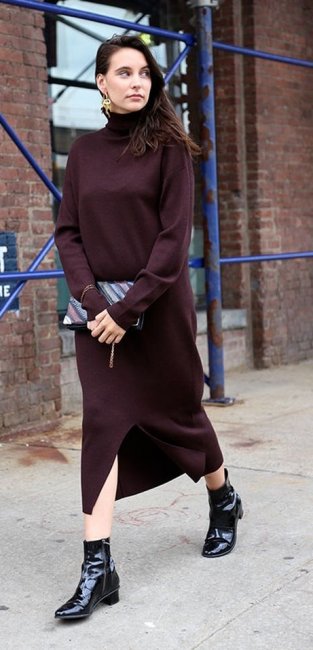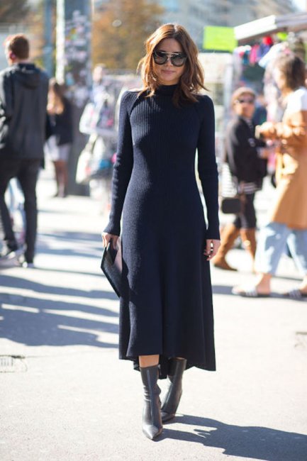 Для офиса может подойти и классическое платье из плотного трикотажа. В нынешнем сезоне самыми популярными моделями стали платья-миди с высоким воротом, которые великолепно смотрятся в однотонной цветовой гамме. Вопреки своей минималистичности, такое изделие всегда очень эффектно.