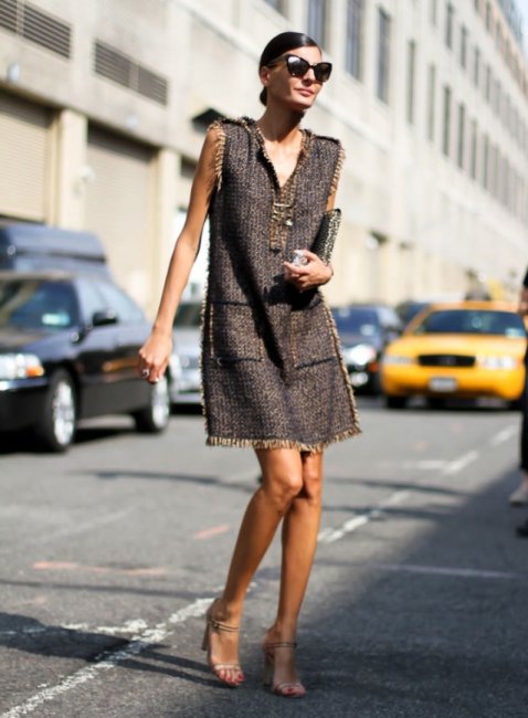 Модные кутюрье применили для пошива таких платьев различные материалы. Для осени и зимы лучше всего подойдут твид и нежный тонкий кашемир.