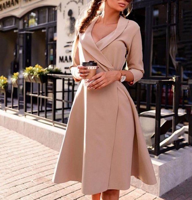 Офисные платья выполнены из таких теплых материалов, как шерсть, кашемир, твид. Платья в стиле кейп стали одной из самых актуальных новинок нынешнего сезона. Офисные платья по обыкновению сопровождаются стильными принтами в виде вертикальных полос и клетки. В сезоне 2021-2022 на пике популярности нестандартные пышные рукава.