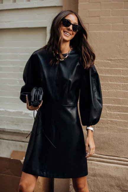 Платье-футляр ни в коем случае не должно быть слишком строгим. Оно может быть снабжено баской, бантами, декоративными пуговицами, ремешком (тонким или, наоборот, широким). Стопроцентным хитом 2021-2022 гг. станут рукава в виде фонариков.