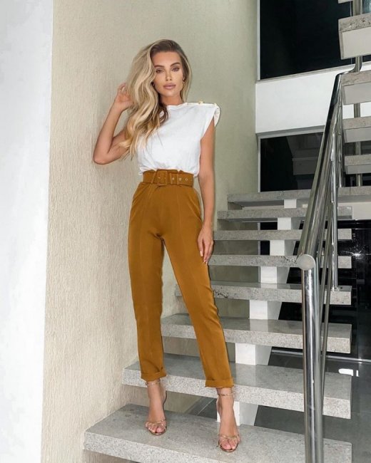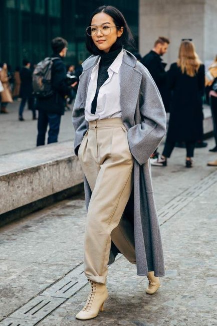 Однако для тех, кто хочет добиться зрительного увеличения роста или длины ног, модные брюки беж с широким экстравагантным поясом или со слегка заниженной талией на защипках будут прекрасным вариантом. Список модных фасонов достаточно обширный, чтобы можно было подобрать подходящий и выглядеть в соответствии с требованиями.