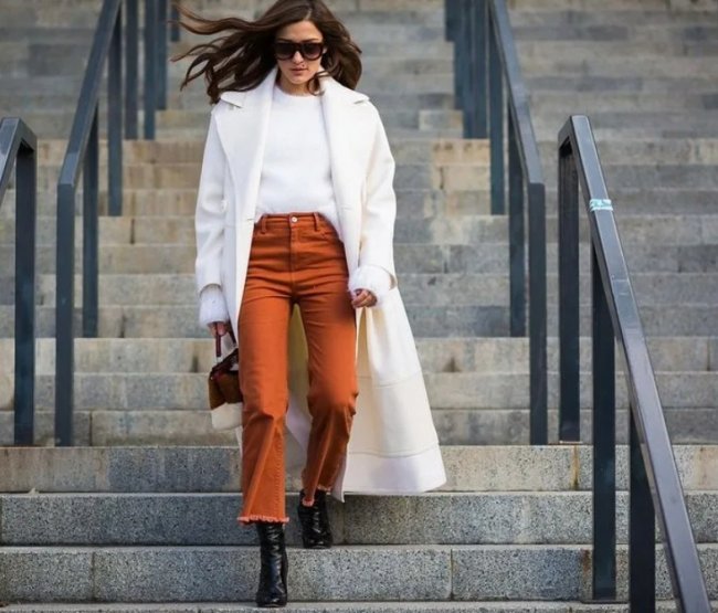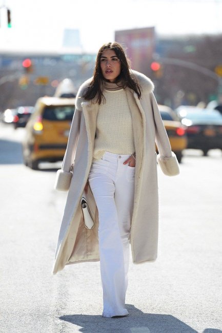 Традиционные серые, коричневые, белые и синие по-прежнему в тренде. Их пополнили в новом сезоне терракотовый, сиреневый, оливковый и голубой. Белый цвет – несколько странный выбор для зимнего повседневного гардероба, но он пригодится в создании модного лука на торжественных или развлекательных мероприятиях, при условии, что предмет одежды пошит по предложенному фасону.