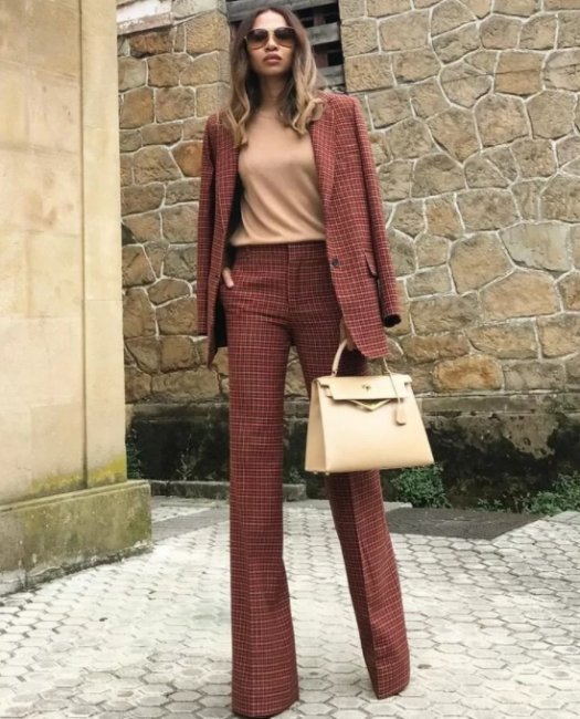 Брюки с принтами остаются в тренде с лета, только для холодного времени года их изготавливают из другой ткани. Допустимы полоска и клетка. Расцветки тай-дай, цветочный и горошек рекомендуется оставить для теплого времени года.