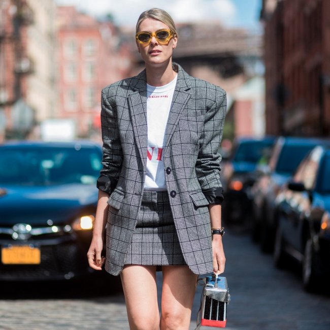 С таким изделием можно создавать модные тандемы. Клеточные жакеты отлично сочетаются с такими вещами:
