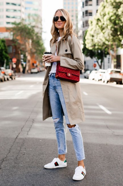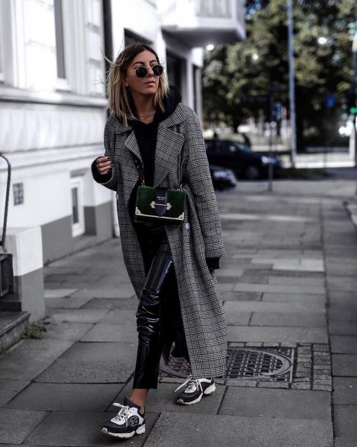 С плащом кроссовки также будут смотреться удачно. Весной 2022 в тренде окажутся нюдовые модели, с клетчатым принтом, в стиле оверсайз. Каждый фасон будет великолепен в дуэте со стильными кроссовками.