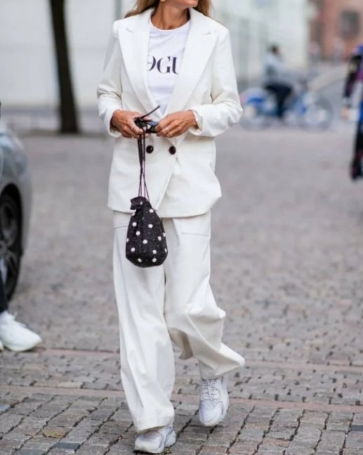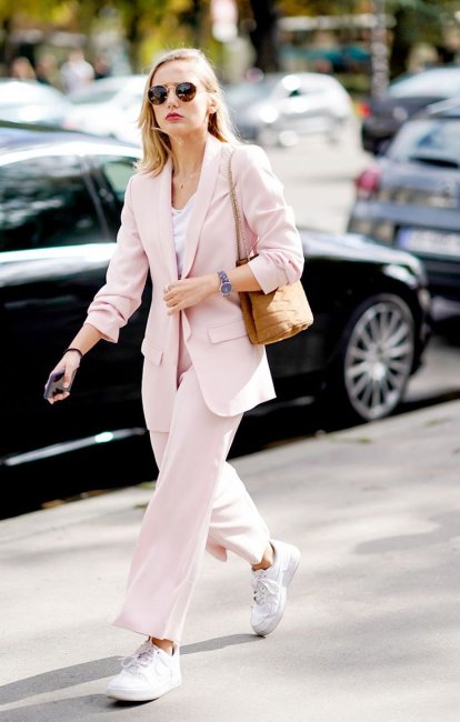 Актуальные тренды современности стали более демократичными, позволив дополнять классические модели женских костюмов кроссовками. Так можно отправиться даже в офис, если это приветствует дресс-код, в противном случае они могут прийти на смену туфлям в конце дня.
