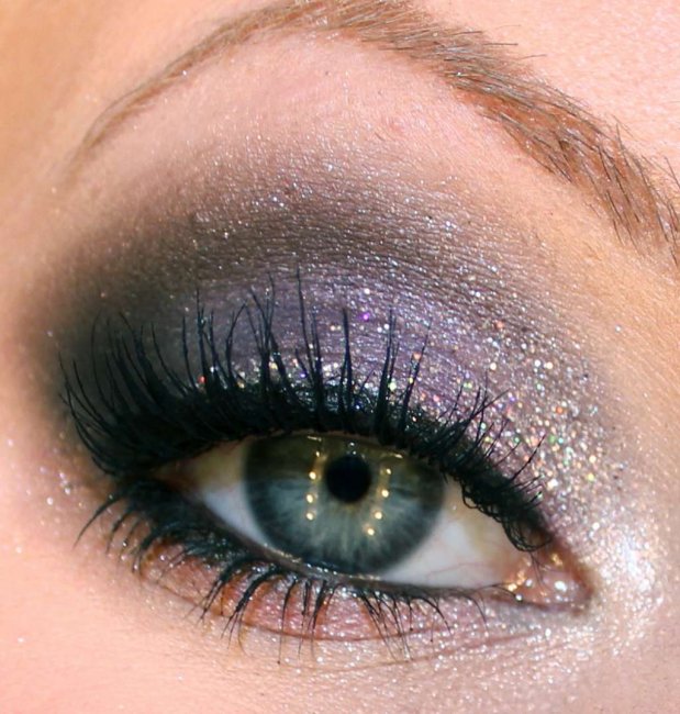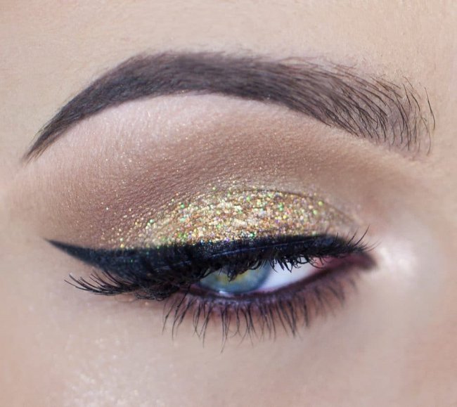 Если во время новогоднего торжества вы желаете затмить других присутствующих дам, обратите внимание на сверкающие тени. Для макияжа глаз подойдут разноцветные стразы, переливающийся глиттер и пайетки. Готовый макияж с использованием сверкающих теней будет выглядеть просто восхитительно.
