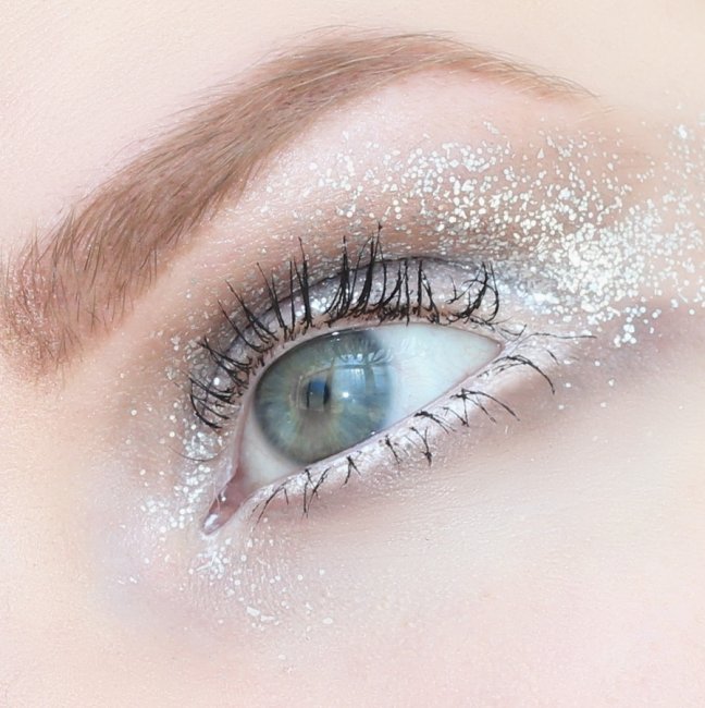 Для модниц, которые любят выделяться в толпе, в грядущем году модные визажисты предлагают тематический мейкап, который выглядит очень необычно, смело и интригующе. Голографические стразы, россыпь переливающихся блесток, различные капельки, пайетки и снежинки помогут создать самые смелые и необычные образы.