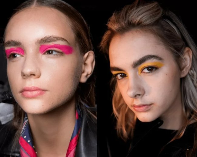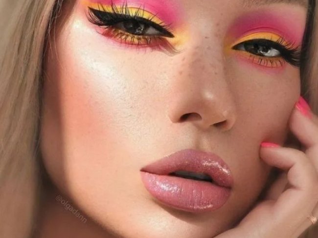 Молодые девушки, которые проводят новогоднюю ночь в шумной компании, клубе, могут сделать неоново-кислотный макияж, используя тени, тушь, подводки этого спектра цветов. Нанести их можно на нижнее и верхнее веко. Подводка «кошачий глаз» подчеркнет дерзость цветовой палитры.