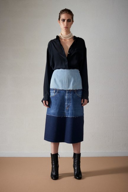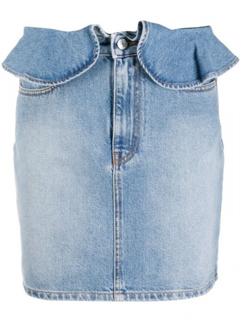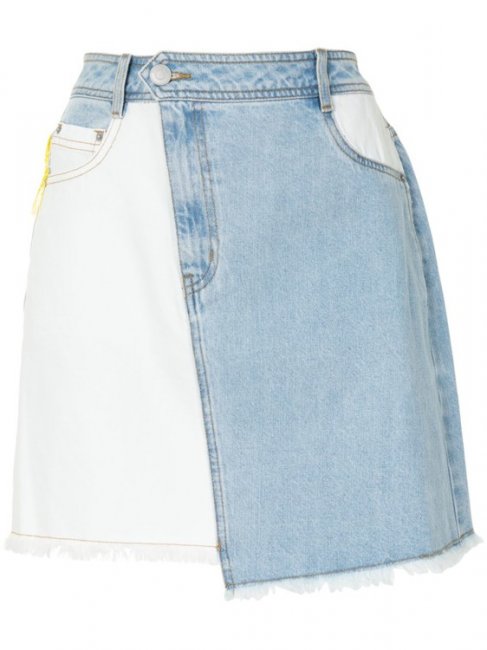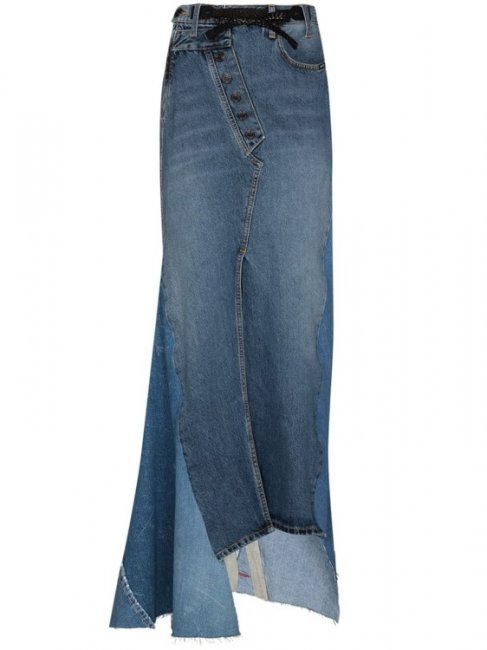 ChanelДжинсовую мини юбку можно также найти в коллекции украинского дизайнера Ксении Шнайдер. Бренд, известный своей работой в сфере апсайклинга, представил мини-юбку А-силуэта, состоящую из различных оттенков денима, заимствованных из прошлых коллекций. Такую модель легко будет вписать в весенне-летний гардероб, например, в дуэте с базовой белой футболкой и кедами.