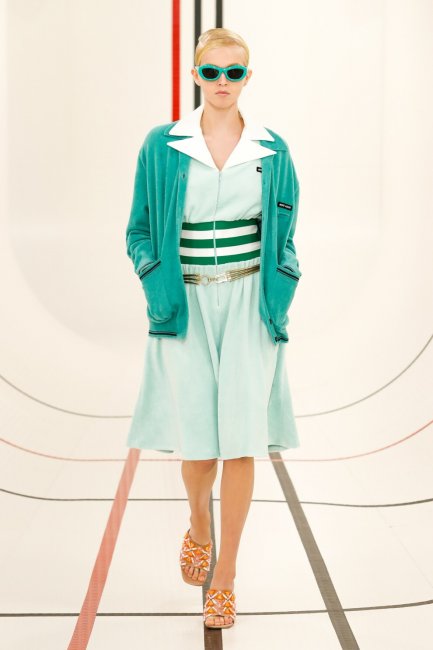 SportmaxНесмотря на то, что ярко-зеленый цвет правит баллом в Instagram-аккаунтах модниц, количество образов в пастельном мятном цвете может легко конкурировать и даже одержать первенство в коллекциях брендов. Мятный - цвет обновления и перезагрузки, которая так необходима после затяжного локдауна. Так, Miu Miu соединили в одном образе сразу несколько вещей в зелено-голубой гамме - приглушенно мятное платье и аквамариновый велюровый бомбер. Тем временем, Ami и Salvatore Ferragamo показали как носить монохромные деловые ансамбли в популярном цвете - оба бренда подружили мятные образы с белой обувью.