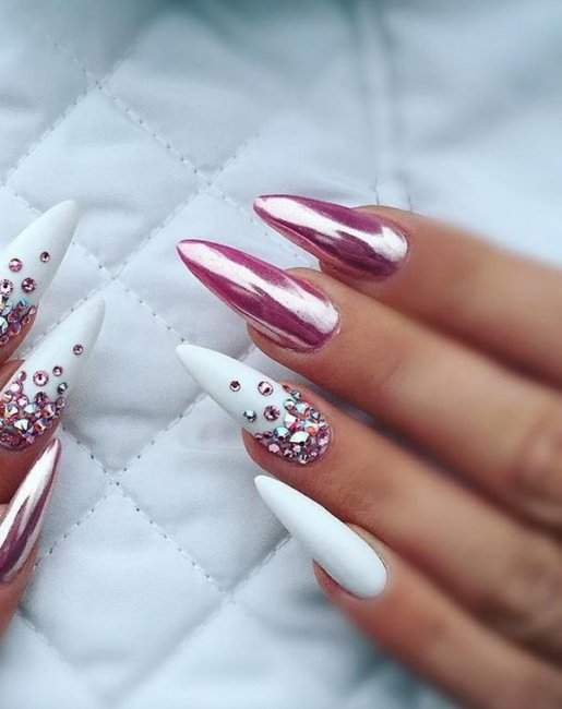 Стразы на острых длинных ногтях
