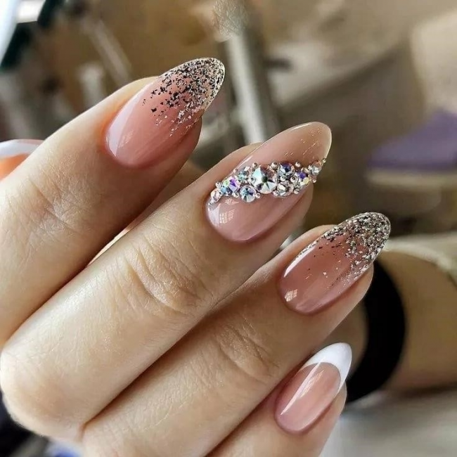 Сочетание стразов и френча
