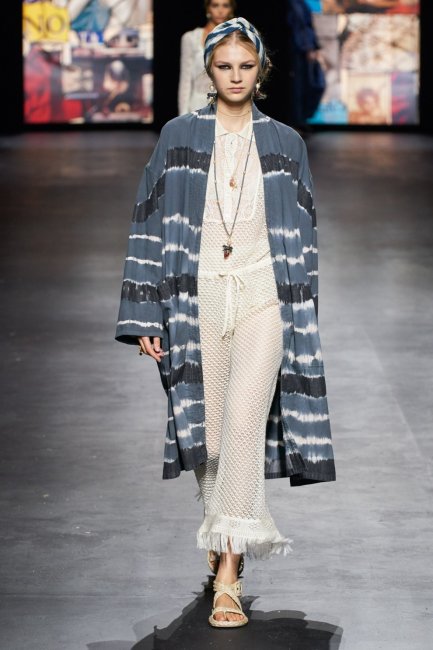 Лучшим союзником предстоящих летних вечеринок станут туники, платья и юбки в духе fishnet, украшенные пайетками или изготовленные из металла. Такие модели в своих коллекциях продемонстрировали Balenciaga и David Koma. Этим ярким элементам не нужно дополнительное обыгрывание - оба бренда сделали сетку главной звездой образа, дополнив ее комбинезоном или топом черного цвета. Не меньшей популярности этим летом будет пользоваться fishnet, который станет самостоятельной модной единицей и которую не нужно будет надевать поверх чего-то другого. Романтичные комбинезоны с бахромой и ажурной отделкой, как у Dior, или мини-платья с длинным рукавом и V-образным вырезом, как у Bottega Veneta, - выбор за вами.