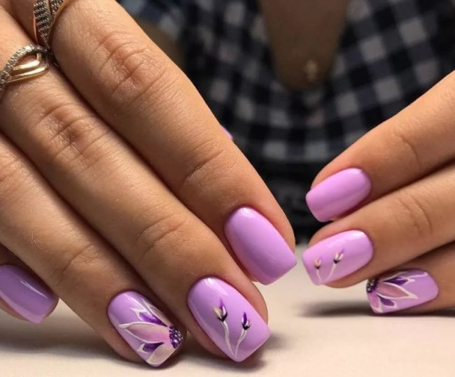 Цветочные мотивы. В этом сезоне они тоже остаются актуальными. Но желательно делать их более простыми, не перегружая ноготь большим количеством цветочков.