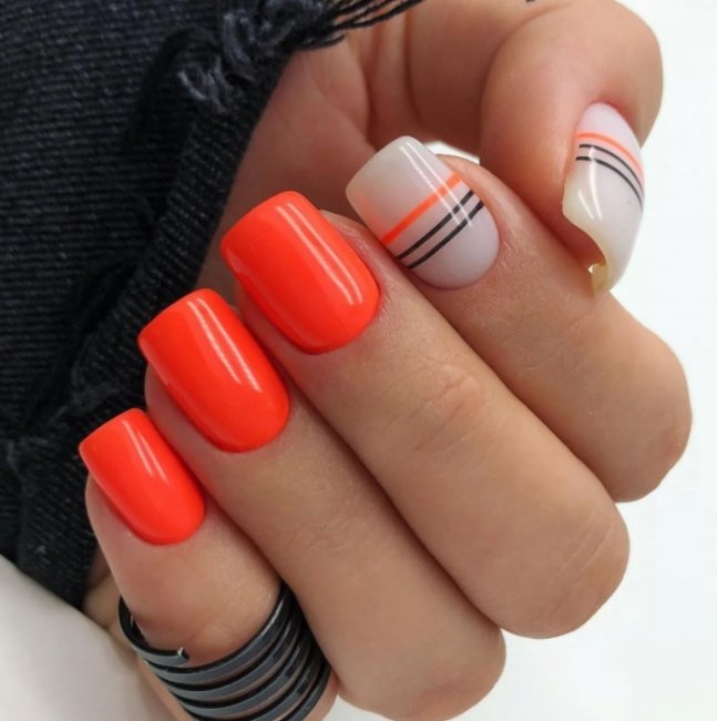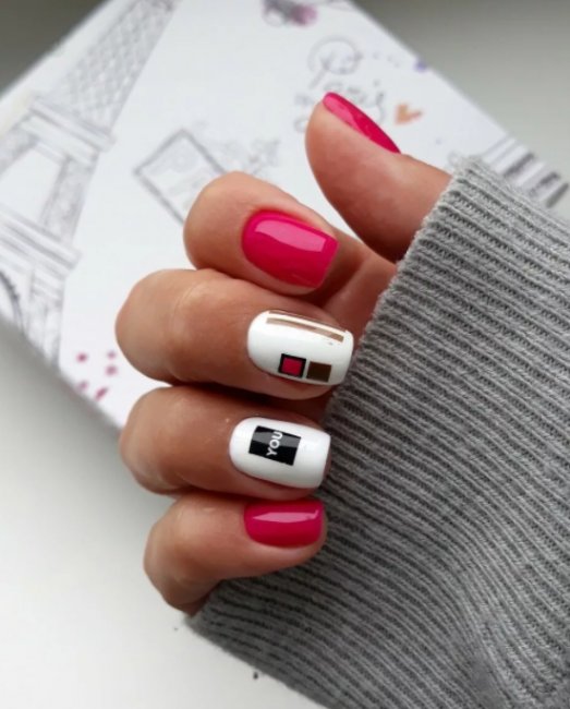 Минимализм будет смотреться всегда лучше, чем интенсивный рисунок на всех ноготках.