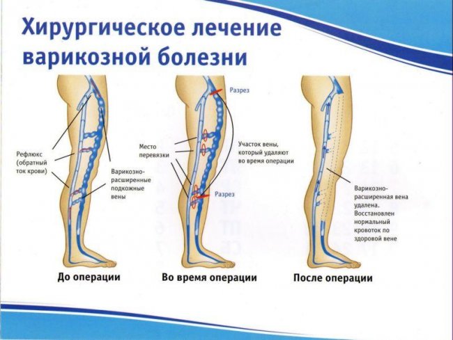 Суть операции против варикоза в том, чтобы удалить вены, пораженные болезнью. Это достаточно безопасно, так как в процессе проведения операции основной кровоток не нарушается, то есть организму человека ничего не угрожает. Удаляют в этом случае лишь подкожные вены, которые берут себе в нагрузку лишь 10% от общего количества крови человека. После удаления «больных» вен здоровые глубокие вены распределяют между собой эту десятую часть всей крови.