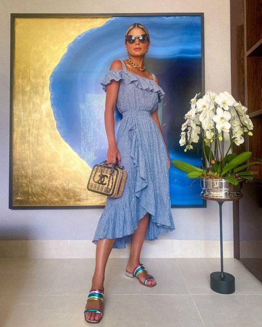 Многие женщины не любят платья миди, т. к. боятся визуально укоротить фигуру. Этот эффект можно заметить как на фото, так и в реальности. Действительно, в платье, которое заканчивается посередине икры, высокие люди выглядят наиболее привлекательно. Однако, если вы невысокого роста, наденьте туфли на танкетке или каблуке – тогда сарафан миди-длины будет стройнить и отлично смотреться с выбранными вами аксессуарами.