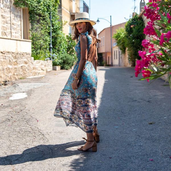 Бохо снова занимает 1-е место в списке модных тенденций. Одежда в этом стиле описывается как нежная и женственная. Сарафаны на сезон весна-лето 2022 в стиле бохо сочетают в себе легкость и многочисленные декоративные элементы: