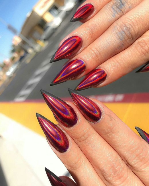 В 2022 году для острых ногтей применимы различные техники дизайна и декора: френч, минимализм, втирки, стразы и т. д. Одни из них призваны сгладить агрессивность формы, другие – наоборот, сделать акцент на ней. Делать выбор нужно в зависимости от общего имиджа и личных предпочтений.