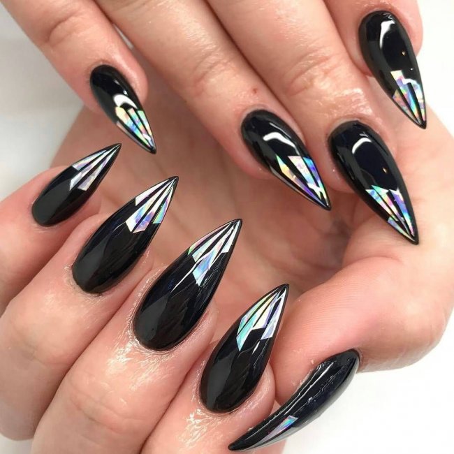 Модные новинки блестящего дизайна 2022 на острые ногти
