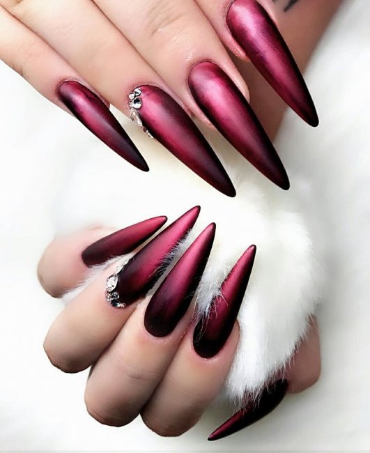 Этот цвет относится к классическим и находится в топе уже несколько лет подряд. Он способен сделать маникюр на ногтях острой формы достаточно необычным и в то же время элегантным, что позволяет использовать его как в повседневном, так и в праздничном образе.