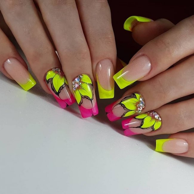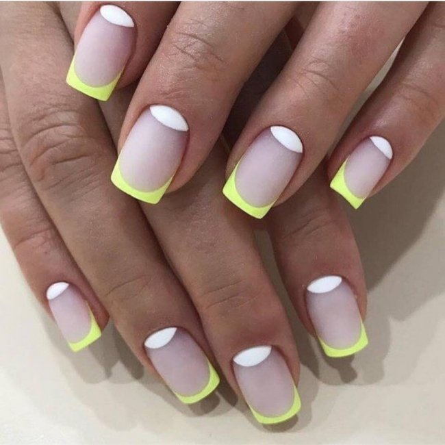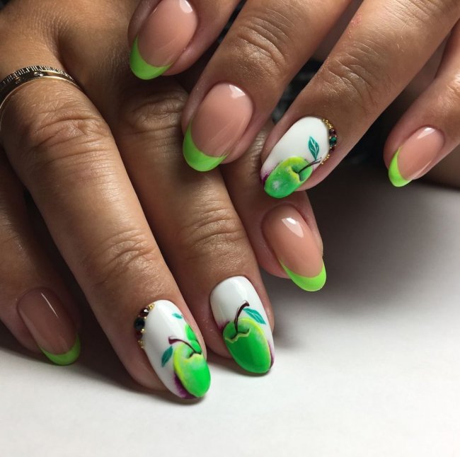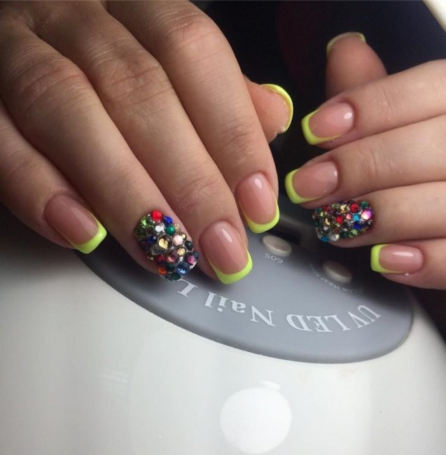 В качестве исключения стилисты разрешают сочетать яркие цвета с белым френчем.