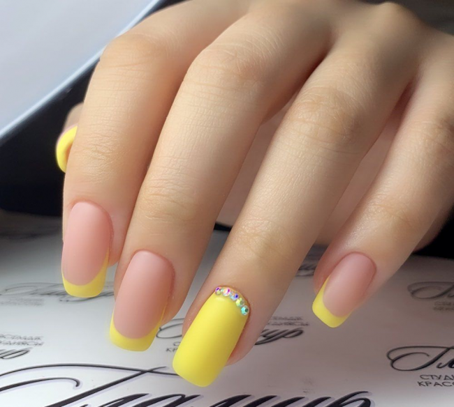 В 2022 году не стоит бояться экспериментировать с маникюром. Начать можно с однотонного френча желтого или зеленого цвета. Также свежести придадут голубой и розовый цвета.