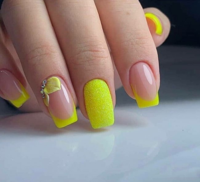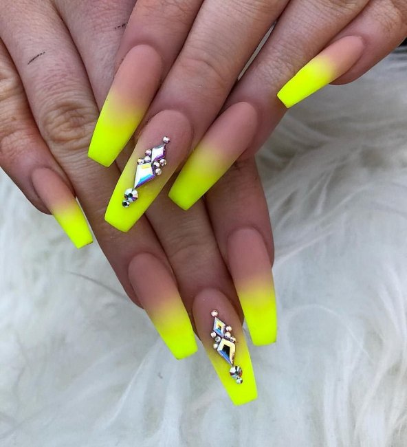 Стилисты советуют летом обратить внимание на гель-лаки кислотных цветов. Неон продолжает оставаться в тренде для дизайна ногтей.