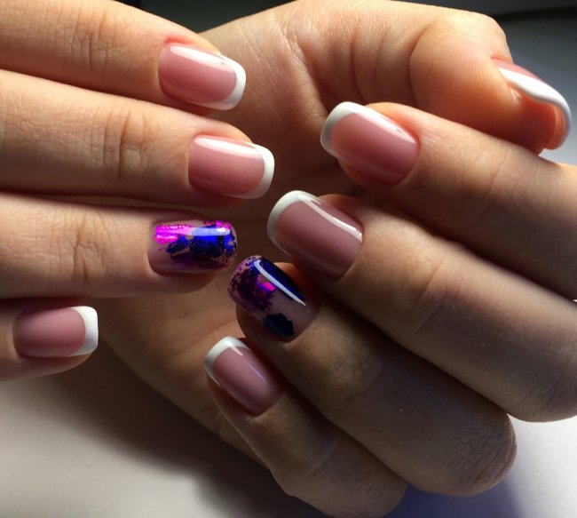 Стилисты советуют при создании френча с помощью фольги использовать до 3 цветов. Большее количество может сделать маникюр вульгарным.